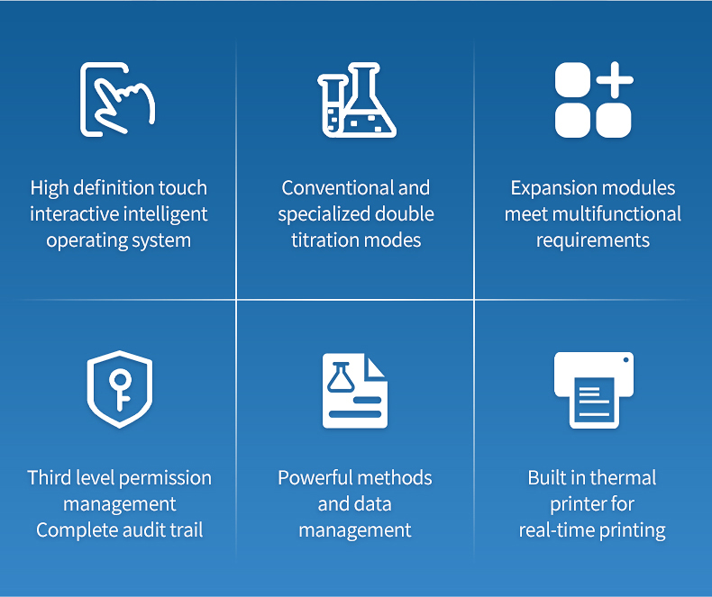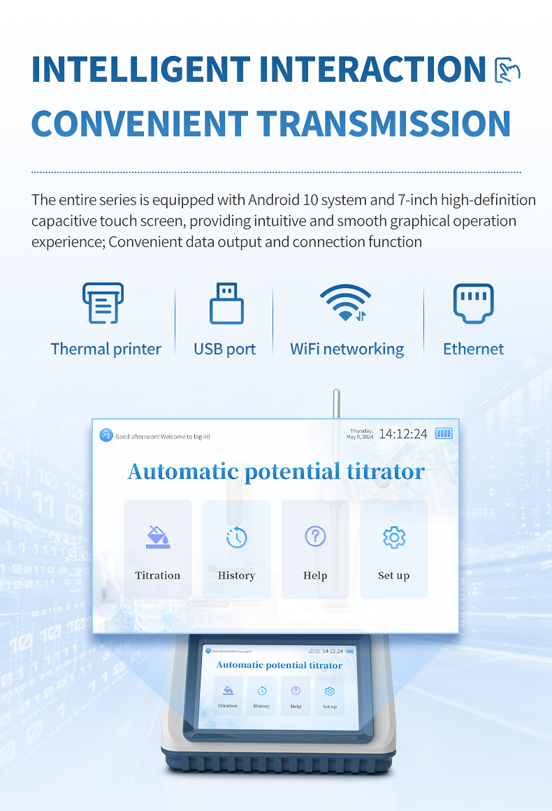 Equipped with a 7-inch HD color touch screen. It provides real-time monitoring of the titration process and dynamic curve visualization.