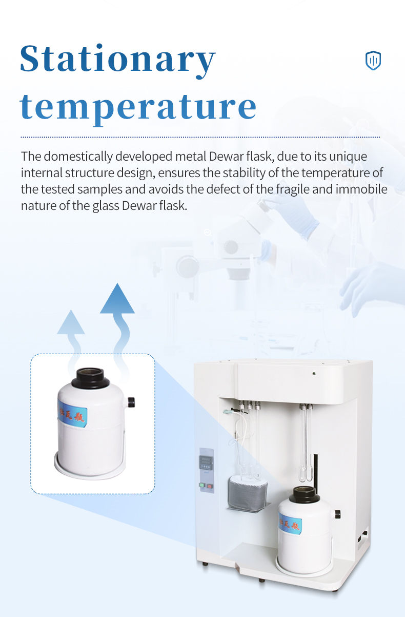 The independently developed metal Dewar flask, due to its unique internal structural design, ensures a constant temperature of the tested sample while avoiding the fragility and inability to move of glass Dewar flasks.