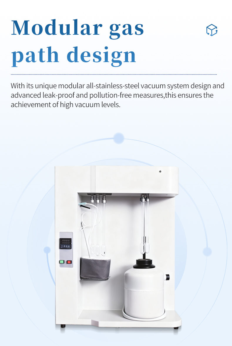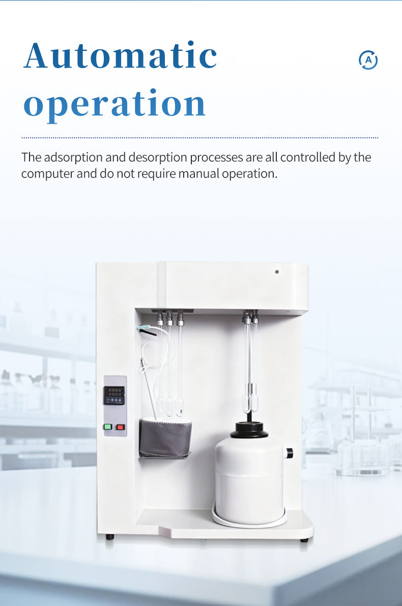 The fully automatic surface area and porosity analyzer introduces the most advanced design concept in the world today. It adopts a unique modular all stainless steel vacuum gas path design and advanced anti leakage and pollution-free measures to ensure the realization of high vacuum and avoid the disadvantages of easy leakage due to too many connecting pipeline joints.