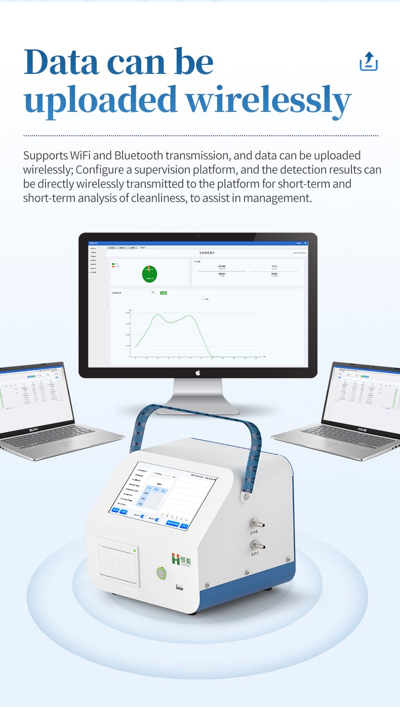 8. Configure a supervision platform, and the detection results can be directly transmitted wirelessly to the platform for long-term and short-term analysis of cleanliness, assisting management.