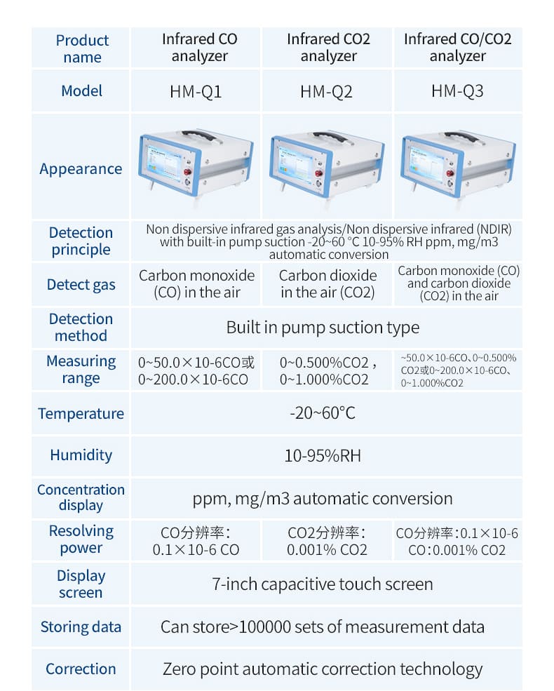 4. Measurement range: 0~0.500% CO2, 0~1.00% CO2