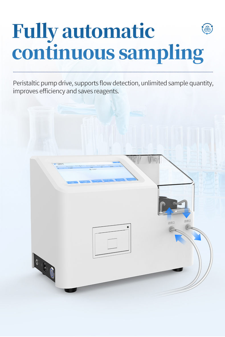 2. Using a peristaltic pump for continuous automatic injection, flow detection is not limited by the number of samples, allowing for continuous multi sample testing and saving reagent consumables;