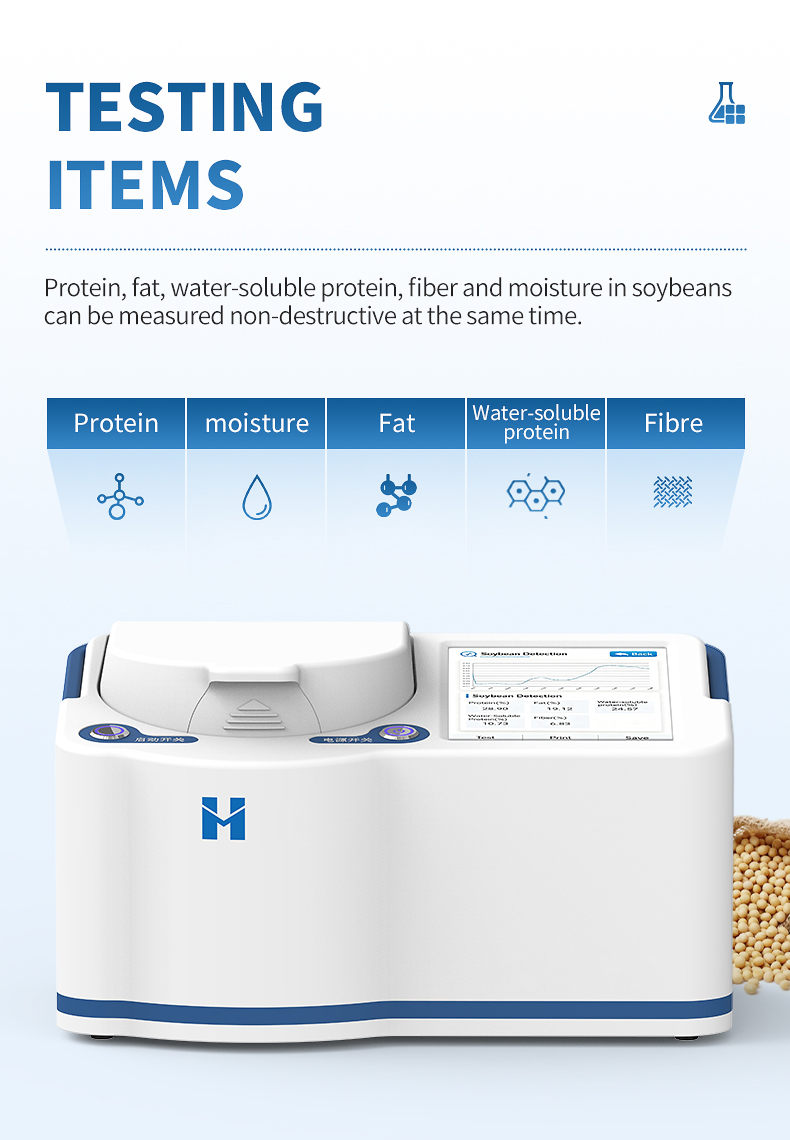 5. ★ Complete testing items: protein, fat, moisture, fiber, and water-soluble protein in soybeans;