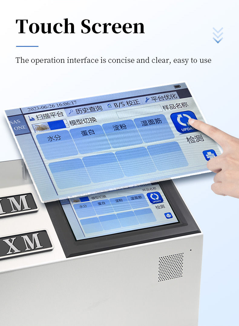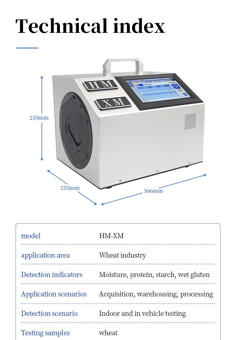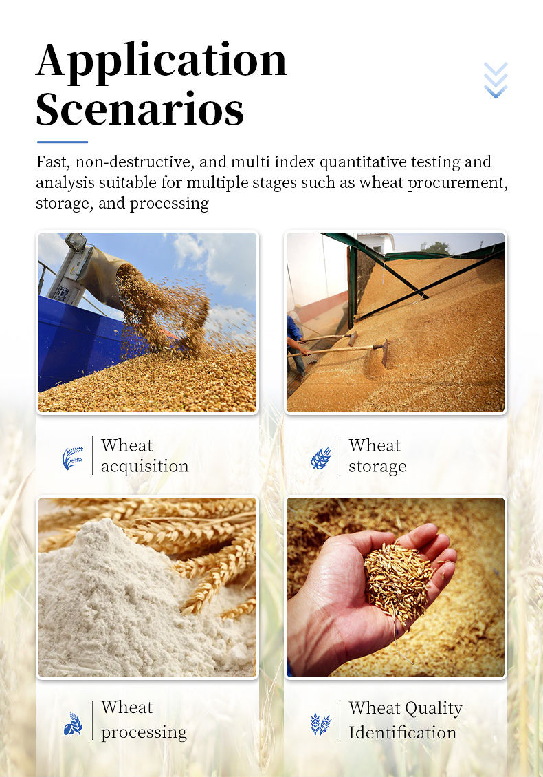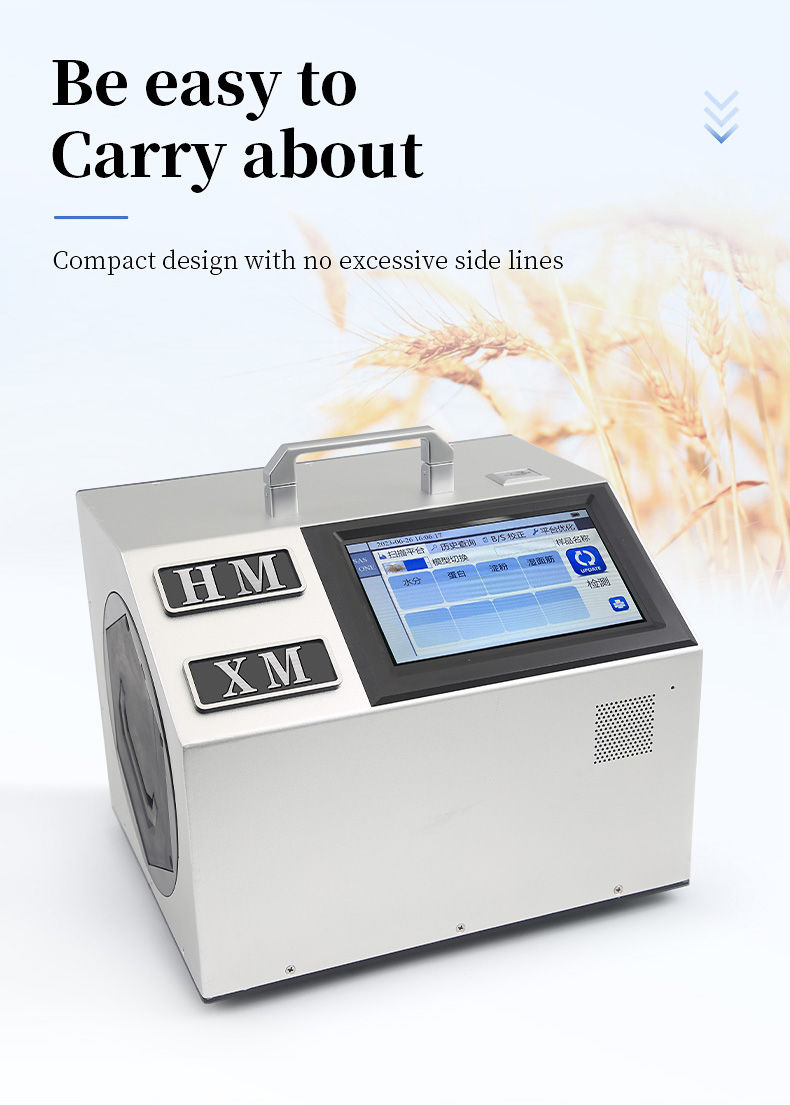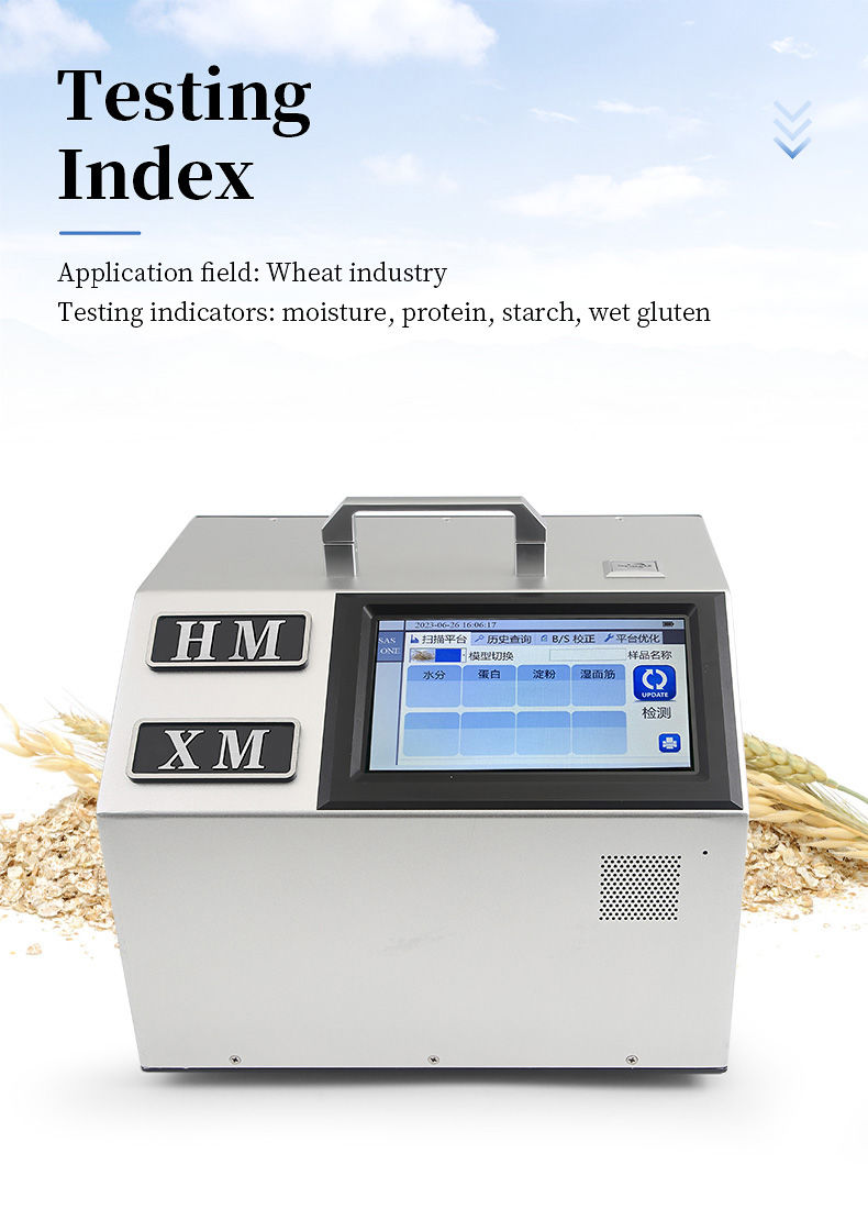 The portable wheat analyzer can be used for rapid, non-destructive, and multi index quantitative detection and analysis of multiple links such as wheat acquisition, storage, and processing, providing a fast detection method for wheat quality identification. The instrument can be applied to different occasions such as laboratories, workshops, and field sites.