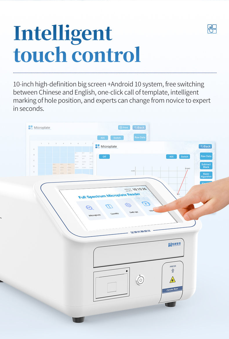 8. Supports endpoint detection, dynamic monitoring, and full band spectral scanning modes, compatible with covered/uncovered microplates and colorimetric dishes (including colorimetric dish incubation function);