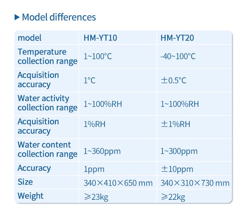 Water content (optional): Water activity collection: 1~* * * * RH; Accuracy: ± 1% RH