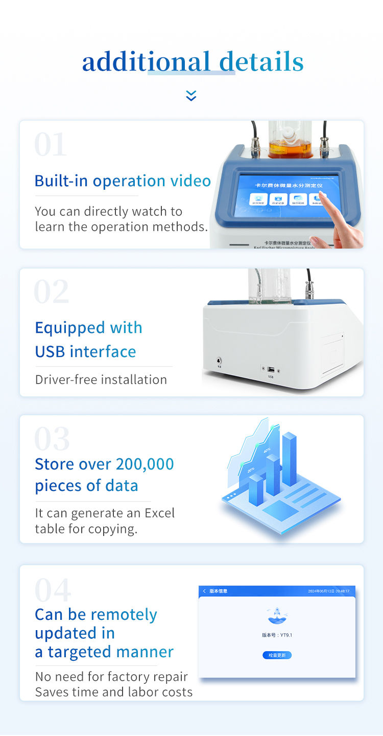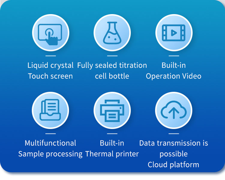 13. Equipped with anti diffusion titration heads to avoid moisture measurement errors caused by the loss of titrant in idle tubes;