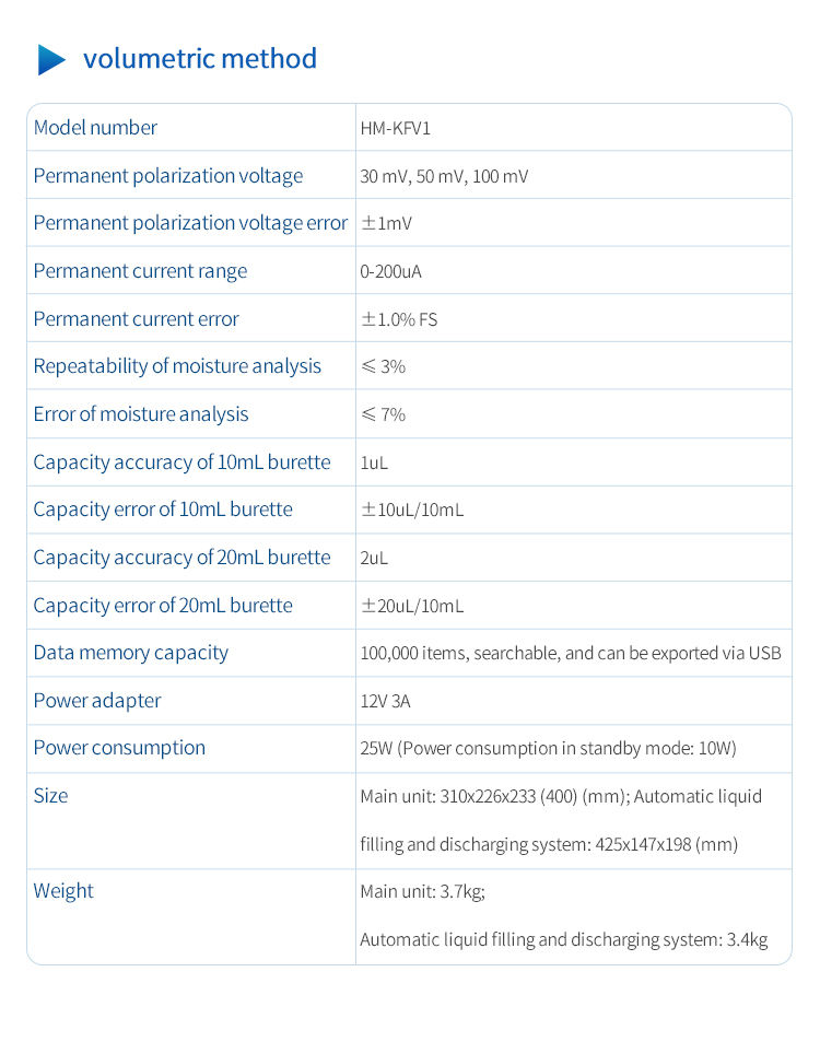 The measurement accuracy of this Karl Fischer titration moisture meter (volumetric titration method) complies with the provisions of JJG 1154-2018 "Calibration Regulations for Karl Fischer titration Moisture Meters".