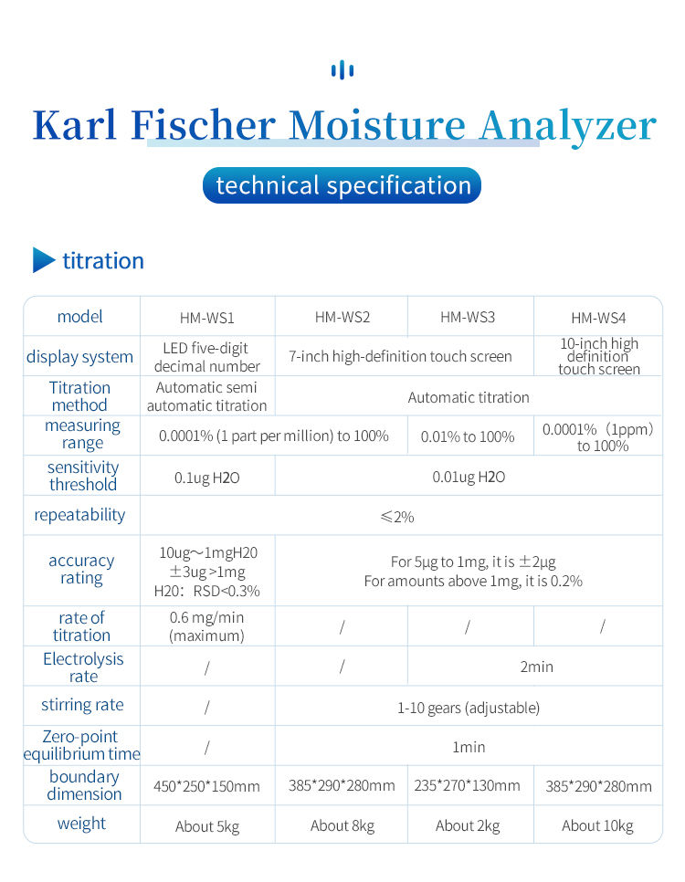 This instrument is widely used in the fields of pharmaceuticals, chemicals, food, and petroleum, and is a key equipment for detecting moisture in quality control and scientific research.