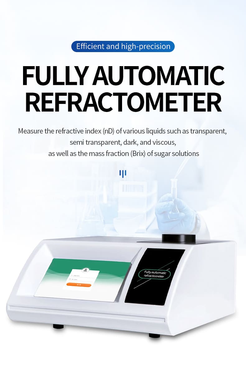 The fully automatic refractometer is equipped with high-performance linear CCD photosensitive components, and is equipped with a semiconductor Peltier super temperature control system through high-speed and high-precision signal acquisition and analysis processing technology. It can efficiently and accurately measure the refractive index (nD) of various liquids such as transparent, semi transparent, dark, and viscous, as well as the mass fraction (Brix) of sugar solutions.