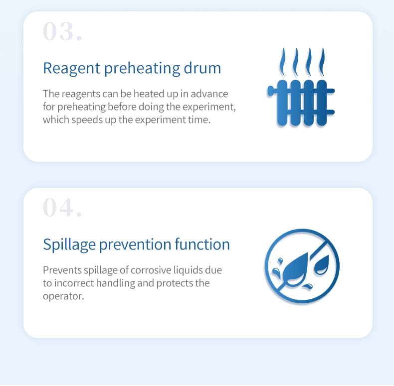 7. ★ External reagent preheating bucket, which can preheat the reagents in advance before conducting experiments, accelerating the experimental time;