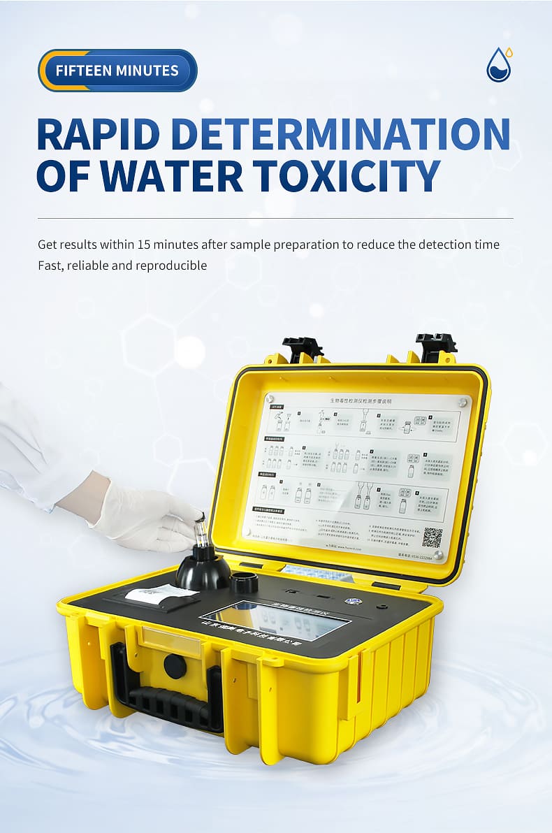 The HM-DX type water quality biological toxicity detector is a new generation of biological acute toxicity analyzer used in the laboratory. It is a toxicity detection system based on biological fluorescence sensing technology, which qualitatively and quantitatively detects the changes in luminescence intensity of luminescent bacteria during metabolism. Compared with traditional biological detection methods such as fish, fleas, and other aquatic organisms, the luminescent bacteria method is simple, fast, sensitive, adaptable, has good repeatability, high accuracy, low cost, and has a wide range of applications. It is a rapid water toxicity detection instrument designed for environmental pollution, emergency accidents, security checks, and routine testing purposes, and can be used for the overall toxicity detection of heavy metals, toxins, neurotoxins, pesticide formulations, and other substances in on-site water.