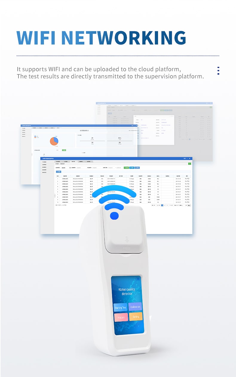 ② Equipped with a cloud monitoring platform, the test results can be directly wirelessly transmitted to the platform for long-term and short-term water quality analysis and auxiliary management.