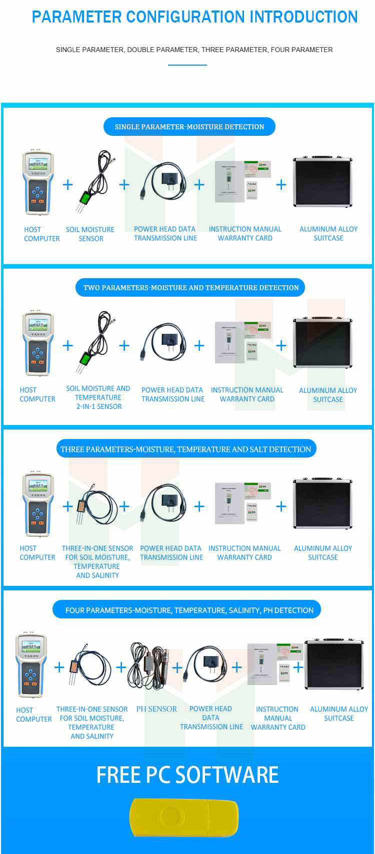 5. The instrument can be set with a variety of soil formulas to facilitate moisture measurement of different soils.