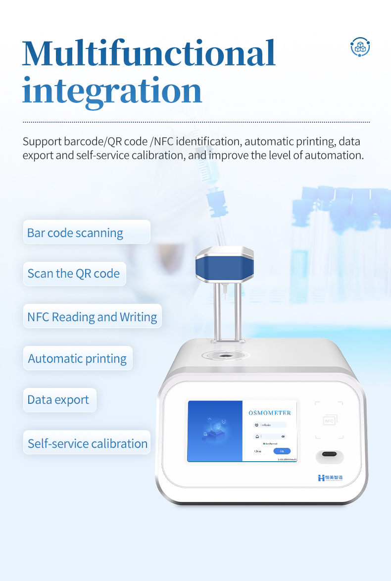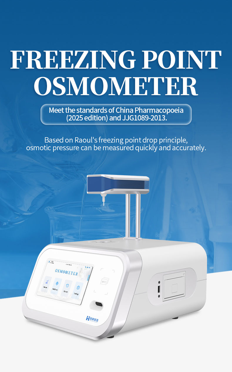 The freezing point osmolality analyzer is based on the Raoult freezing point depression principle, employing advanced semiconductor refrigeration technology and a high-precision temperature sensor to achieve rapid, accurate, and reliable measurement of the osmolality of solutions. The instrument is equipped with a high-definition touchscreen, featuring an intuitive and simple interface with multiple practical functions such as automatic measurement, result storage, data traceability, and report printing. Its measurement results strictly comply with the requirements of the Chinese Pharmacopoeia and relevant international standards. The core components are stable and durable, ensuring excellent repeatability and reproducibility during long-term use. This product is an ideal tool for pharmaceutical research and development, production quality control, and life science research, showcasing the advanced level of domestically produced high-end analytical instruments.