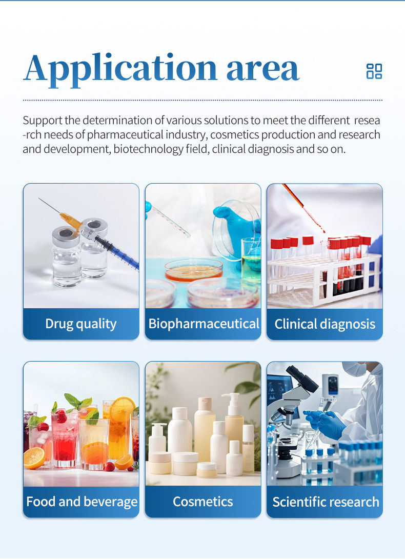 10. Multifunctionality: Supports the determination of various solutions, meeting diverse research needs in the pharmaceutical industry, cosmetics production and R&D, biotechnology, and clinical diagnostics.
