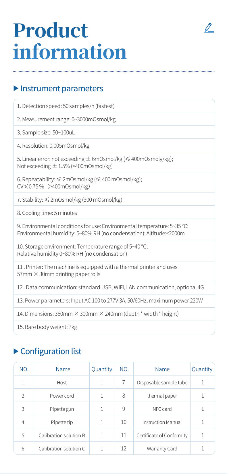 6. Repeatability: ≤2 mOsmol/kg (≤400 mOsmol/kg); CV≤0.75% (>400 mOsmol/kg)